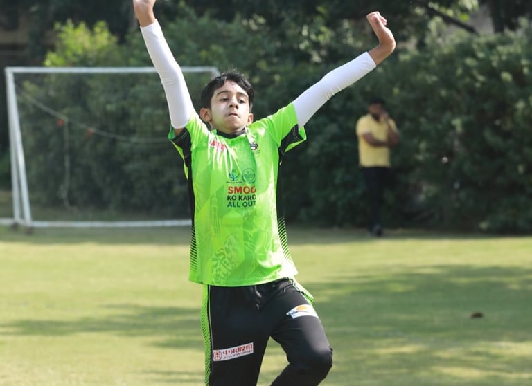 A passionate young cricketer from Pakistan, honing his skills at Ghani Institute of Cricket.